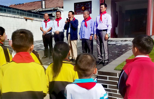 纪念活动后,城乡少先队员手拉手“祝福祖国 梦想起航”迎国庆主题活动在税郭镇牛角村文化驿站举行。少先队员向出席活动的领导们敬献了红领巾。爱心企业枣庄视立美有限公司为现场的全体少先队员赠送了红色书籍。