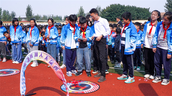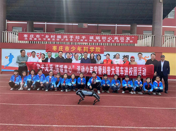 市青少年宫专业教师进课堂,开展同上一堂课——红色主题队课《接过先辈的火炬》、同画一幅画—— 我心中的“流动少年宫”、同唱一首歌——流动少年宫主题曲、舞蹈、武术、篮球等公益课,枣庄市少年科学院的辅导员也为孩子们带来了无人机及机器人编程展示表演,让孩子们感受不一样的课堂教学。孩子们现场操作科普器材,近距离体验科技魅力,极大地开阔了视野与见识,提升科学素养。