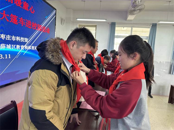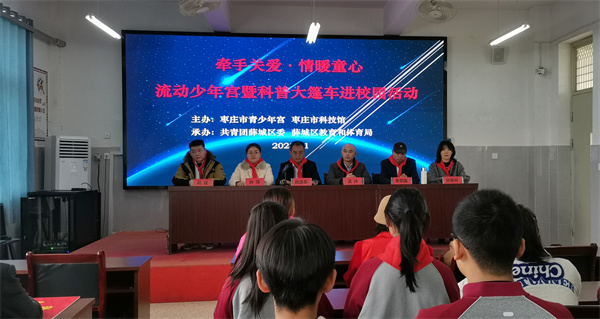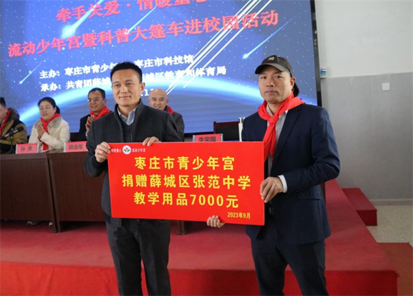 2023年第20期枣庄市“牵手关爱·情暖童心”流动少年宫暨科普大篷车进校园活动在薛城区张范中学举行。枣庄市青少年宫、枣庄市科技馆、共青团薛城区委、薛城区教体局有关领导出席捐赠仪式活动,并观摩公益课程。