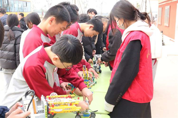 枣庄市青少年宫为学校捐赠教学文体用品。仪式后,枣庄市青少年宫、枣庄市科技馆,枣庄市火炬艺术团、枣庄市少年科学院和枣庄市青少年乒乓球训练基地的专业教师走进课堂,为同学们开展公益专业教学。科技辅导员组织学生操作无人机和机器人等科普器材。