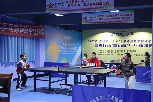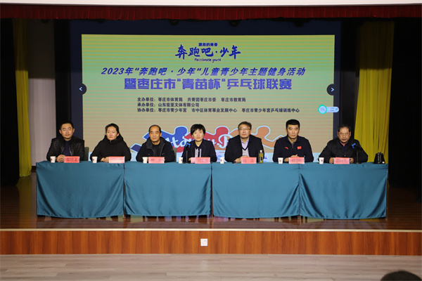 为落实健康枣庄“十大行动”建设,提升群众体育生活满意度工作要求,以及落实“乡村振兴齐鲁样板——村村有好戏”乡村体育“四赛”活动开展的具体体现,通过组织丰富多样的青少年体育竞赛,积极推进“奔跑吧·少年”儿童青少年主题健身体育活动在我市常态化、系统化、科学化的开展。12月15日,由枣庄市体育局、共青团枣庄市委、枣庄市教育局联合主办,山东宏亚文体有限公司承办,枣庄市青少年宫及青少年宫乒乓球训练中心协办的“2023年‘奔跑吧·少年’儿童青少年主题健身活动暨枣庄市首届“青苗杯”乒乓球联赛在市青少年宫拉开帷幕。市体育局党组成员、副局长刘宏杰、共青团枣庄市委副书记赵波及市青少年宫、市中团区委、市中区教体局等有关部门的负责同志出席了开幕式。