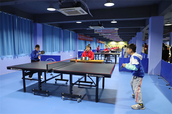 15日至17日,比赛在枣庄市青少年乒乓球训练中心如期举行。此次赛事共分为甲、乙、丙三个组别男子、女子单打,来自全市29所小学270余名青少年运动员同台竞技。比赛现场气氛紧张激烈,选手们比拼技巧、较量战术、博弈心态, 大家你来我往,上步搓球、侧身进攻、后退拉球、大力扣杀,精彩场面层出不穷,小小乒乓球在台上飞快地来回穿梭,击球声与欢呼声此起彼伏,在寒冷的冬日里展现了青春与汗水的挥洒,活力与激情的碰撞,点燃着大家的热情,不时引起现场观众的热烈喝彩声和加油声。