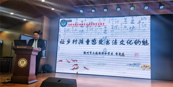会上,北辛中学通盛路校区负责同志首先致欢迎词,枣庄市教科院常务副院长、枣庄市青少年书画院名誉院长单波同志讲话。他在讲话中对书法教学提了四点要求:研读艺术新课标;精读中华经典作品;审读中国汉字之美;品读历代法帖。来自滕州市北辛中学通盛路校区的袁家峰、滕州市大坞镇学区的雷金龙、枣庄市实验学校的宋刚、枣庄市立新小学的王艳、山师大峄城实验高级中学的李川东、市中区教体局的马睿等六位枣庄市书法教学骨干教师结合自己的教学实践做经验交流发言。