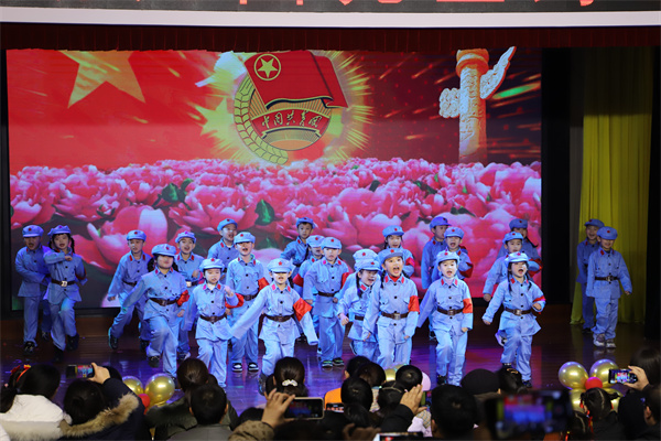 晚会在开场舞蹈《盛世欢歌》中拉开帷幕。孩子们表演了舞蹈《中国少年》《我是一颗跳跳糖》;集体合唱了《红星闪闪》《中华孝道》《向快乐出发》。现场抽奖活动穿插于节目中,并抽取小奖品为孩子们准备布偶玩具;由在场所有的家长小朋友和老师共同完成的现场小游戏,让孩子和家长在活动中体验快乐和满足。最后在舞蹈《相亲相爱一家人》结束了联欢晚会。