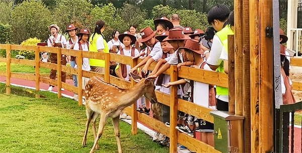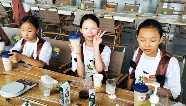 第二天,营员们来到山东安良祥和牧场,开启“疯狂牛仔”的一天:参观牛奶工厂,了解一杯牛奶的来历,给小奶牛喂牧草、摸一下可爱的梅花鹿、认识了憨态可掬的小香猪…… 同学们还体验了如何挤牛奶,并亲手制作面包和奶茶。一天有趣而生动的沉浸式体验活动让同学们学习到了许多实践知识。