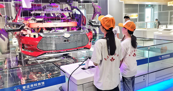第三天,营员们首先游览了铁道游击队影视城,置身在民国时期的建筑群里,寻找英勇的铁道游击队队员的足迹,观看实景剧《三不走》、《沙沟受降》,仿佛穿越到那个战火纷飞的年代,亲眼目睹了勇敢的铁道游击队员爱人民,打鬼子、除汉奸,和日寇英勇战斗的感人场景,引得同学们阵阵掌声。在铁道游击队纪念馆里,同学们通过参观大量的文字、图片、实物,并配合现代声光电技术,通过雕塑、视频等立体呈现铁道游击队的诞生与发展的历史,特别是铁道游击队一系列经典战斗故事:打洋行、爬火车、夺弹药、截物质、送情报,与日本侵略者展开浴血奋战,让日寇闻风丧胆。在市科技馆,一进大厅同学们就能感受到科技感十足,同学们快乐的体验着各种科普器材,与科学零距离接触,“身临其境”感受高科技的震撼。在这里同学们不仅参加了非常有趣的互动类游戏,还能在游戏中获取平时不知道的科学知识。探讨科学的奥秘,体验科学的魅力,感悟科学的力量。