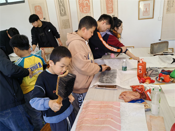 为弘扬传统文化,提高青少年文化艺术素养,加强青少年审美意识,11月2日,市青少年宫举办“金石之约•枣庄市青少年书画院2024年书法访碑公益活动”。 20余名小书法家们来到山亭区杏山博物馆,开启一段与古人对话的旅程,通过研学的方式,解开古老技艺的神秘面纱,体验拓片的独特魅力。