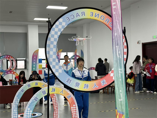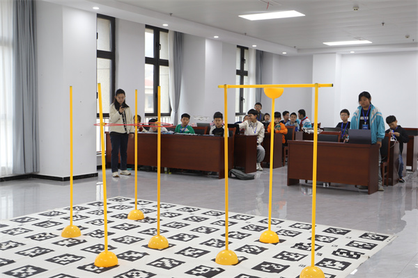 现场气氛热烈非凡,来自枣庄五区一市的400余名中小学生齐聚一堂,带着自己精心调试的无人机蓄势待发。赛场上,选手们目光专注,无人机在他们的操控下如灵动的飞鸟,在空中做出各种高难度动作,穿越障碍、定点悬停,时而高速穿越障碍赛道,时而稳稳悬停于指定点,不时低飞、旋转,在障碍物间完成规定动作后又迅速返航,上演一场场无人机的“速度与激情”,展示出高超的技巧。在编程挑战赛中,选手们通过图形化编程、语言编写程序,控制无人机按科目要求完成赛道任务,检验对程序基本结构和控制方法的掌握,锻炼了专注力和编程思维。
