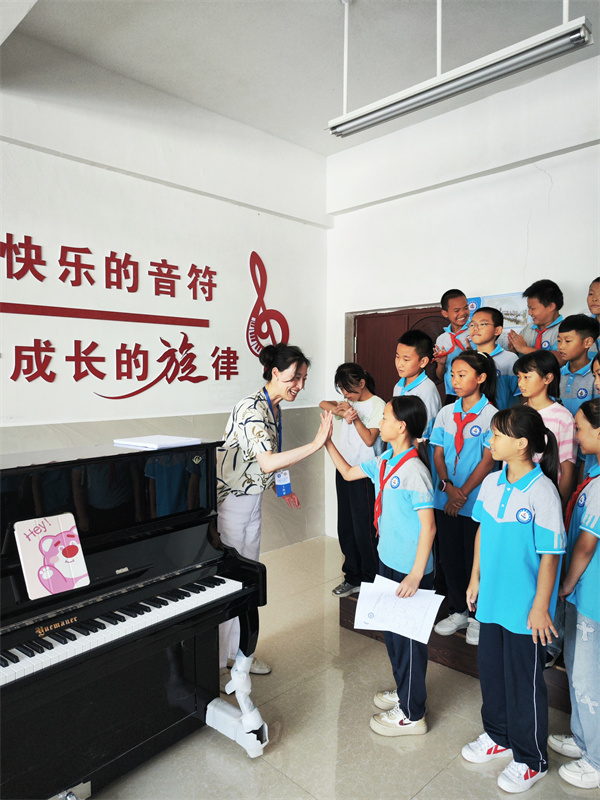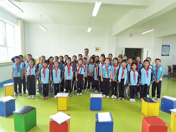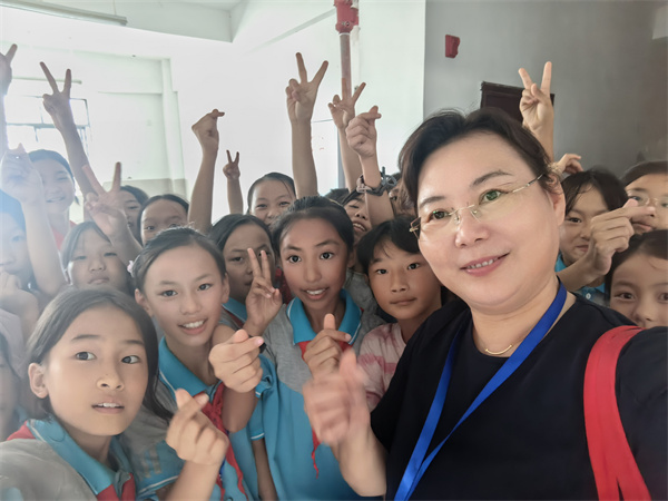 会上,参加支教活动的顾连军、李荣国、刘茹、杜娟、邱文文5位教师分别讲述了支教经历,分享了心得感悟。他们精心备课,充分利用当地有限的教育资源,契合教学内容,设计出富有趣味性和启发性的教学形式。由于学校小军鼓数量不足,教学打击乐的杜娟老师就教孩子们用手在课桌上打节奏,教学现场气氛活泼热烈,取得了意想不到的效果。他们不仅传授知识,更注重培养孩子们的品德和价值观。声乐教师顾连军教学原创红色歌曲《向英雄敬礼》,在教学优美旋律的同时,详细讲解歌词内容,对孩子们进行爱国爱党教育;舞蹈教师刘茹教学运用舞蹈肢体语言,表达抒发孩子们的内心真实情感,鼓励孩子们清晰面对真正的自己。支教教师还注重两地文化的交流,钢琴教师邱文文为孩子们带去了富有地域特色的《沂蒙山小调》,还讲解了山东的文化;国学教师李荣国在传播知识的同时,不忘学习尊重当地少数民族文化,赢得了孩子们的喜爱。