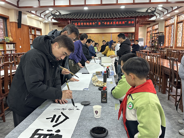 为贯彻落实国家语委《国家中长期语言文字事业发展和改革规划纲要》《教育部关于中小学开展书法教育的意见》的精神,12月27日,由枣庄市文联、共青团枣庄市委主办,市书法家协会、市文艺志愿者协会、市青少年宫、市青少年书画院、市中区文联、共青团市中区委、市中区教体局、市中区建设路小学共同承办的“笔墨诗书迎新年”暨“书法名家进校园”活动在市中区建设路小学隆重举行。