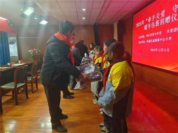 为加强对重点青少年的帮扶关爱工作,帮助困境青少年健康成长,进一步营造全社会共同关爱未成年人成长的良好氛围。近日,由枣庄市青少年宫、共青团峄城区委主办,一场充满爱心与关怀的2024年“牵手关爱 守护榴娃”暖冬物资捐赠活动在峄城区底阁镇中心小学温馨举行。