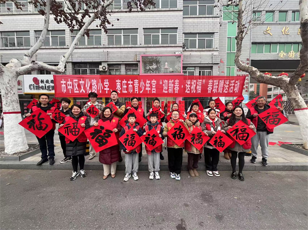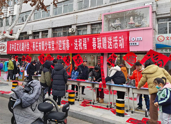 1月23日,由枣庄市青少年宫、枣庄市青年书法家协会以及枣庄市市中区文化路小学联合举办的“迎新春 送祝福”活动在市中区文化路小学热闹举行,为即将到来的春节增添了浓浓的文化氛围。