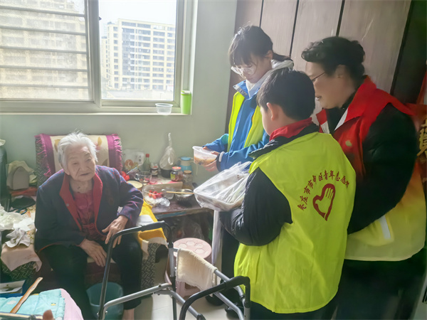 在“追锋行动 青伴夕阳”少先队员学雷锋志愿服务活动中,共青团员和少先队员们走进社区家庭,共同为弱势群体送餐,通过开展学雷锋志愿服务活动,为共同建设和谐美好社会,献上温馨的志愿服务。