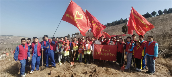 春风送暖,新绿初绽。为深入贯彻落实习近平总书记生态文明思想,牢固树立“绿水青山就是金山银山”的发展理念,助力美丽枣庄建设,3 月 22 日上午,市青少年宫组织教职工参加由共青团枣庄市委、枣庄市自然资源和规划局联合开展“美丽枣庄 共‘树’未来”主题义务植树活动,以实际行动践行绿色发展理念,为建设美丽家乡增添新绿。