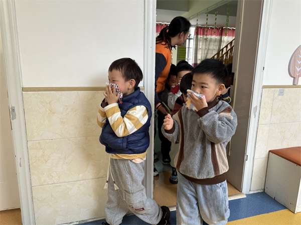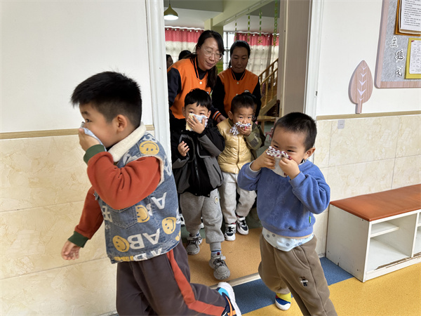 讲座结束后,全体人员在幼儿园进行了消防逃生演练。任教官在现场详细讲解了逃生的相关知识和技巧。工作人员按照所学要求进入应急状态,孩子们在老师的带领下,屈膝弯腰,紧紧捂住口鼻、扶着墙面,沿着楼道内侧快速移动,在最短时间内抵达室外操场的指定安全集合点,全程紧张有序、配合默契。