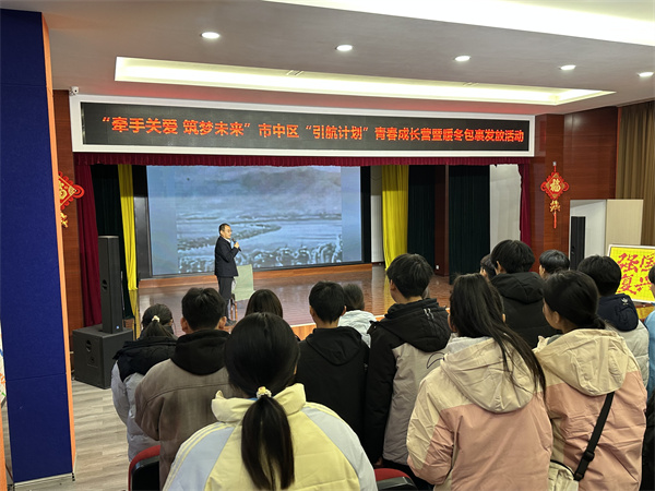 为深入推进青少年思想政治引领,推动“引航计划”落地生根,筑牢青少年理想信念根基,12月18日,“牵手关爱 筑梦未来——市中区‘引航计划’青春成长营”在市青少年宫梦想剧场正式开营。本次活动由枣庄市青少年宫与共青团市中区委联合主办,40余名市中区2025年下半年引航伙伴及16名引航人员齐聚一堂,在红色熏陶、实践体验与温情陪伴中开启成长新旅程。