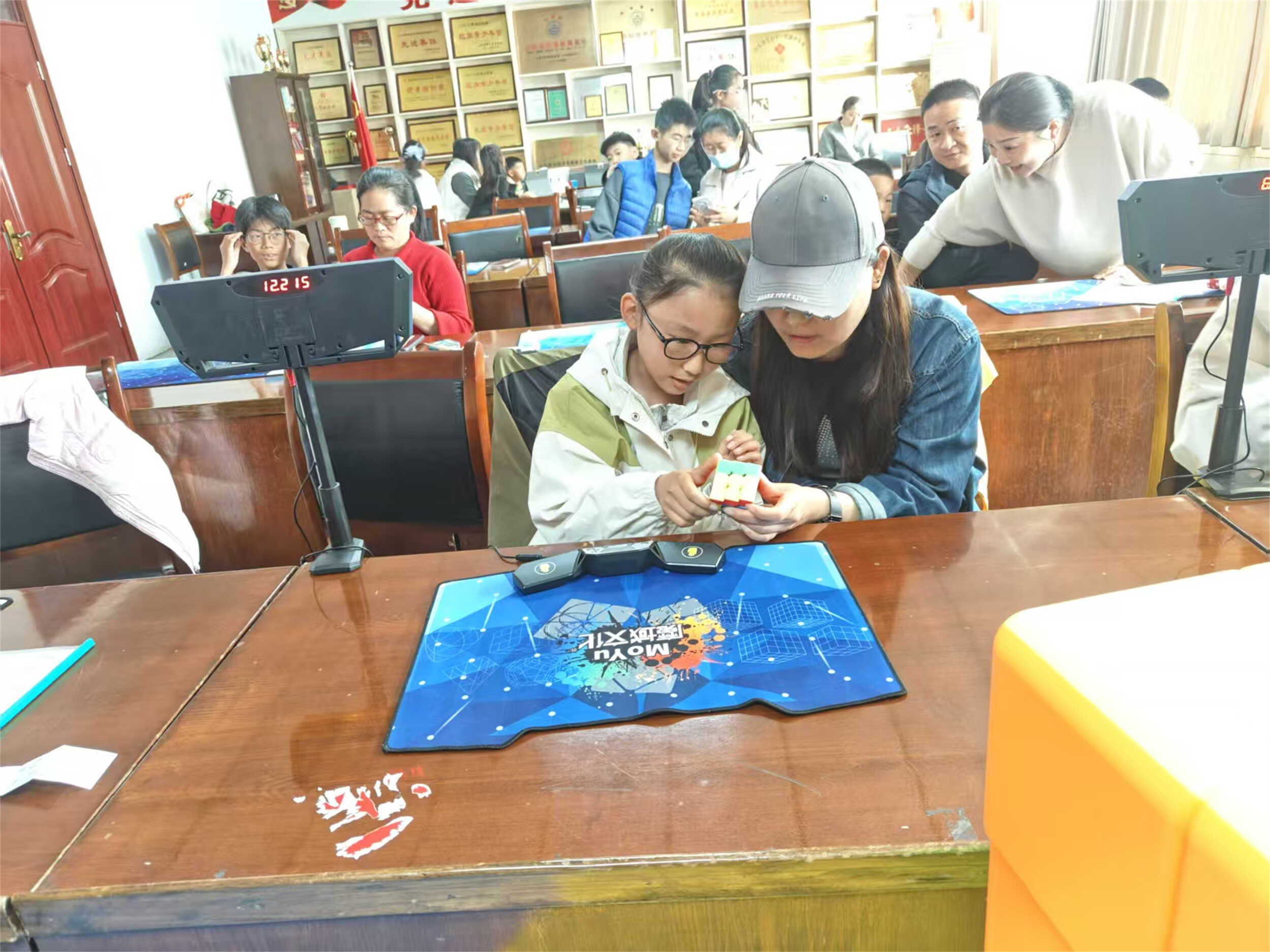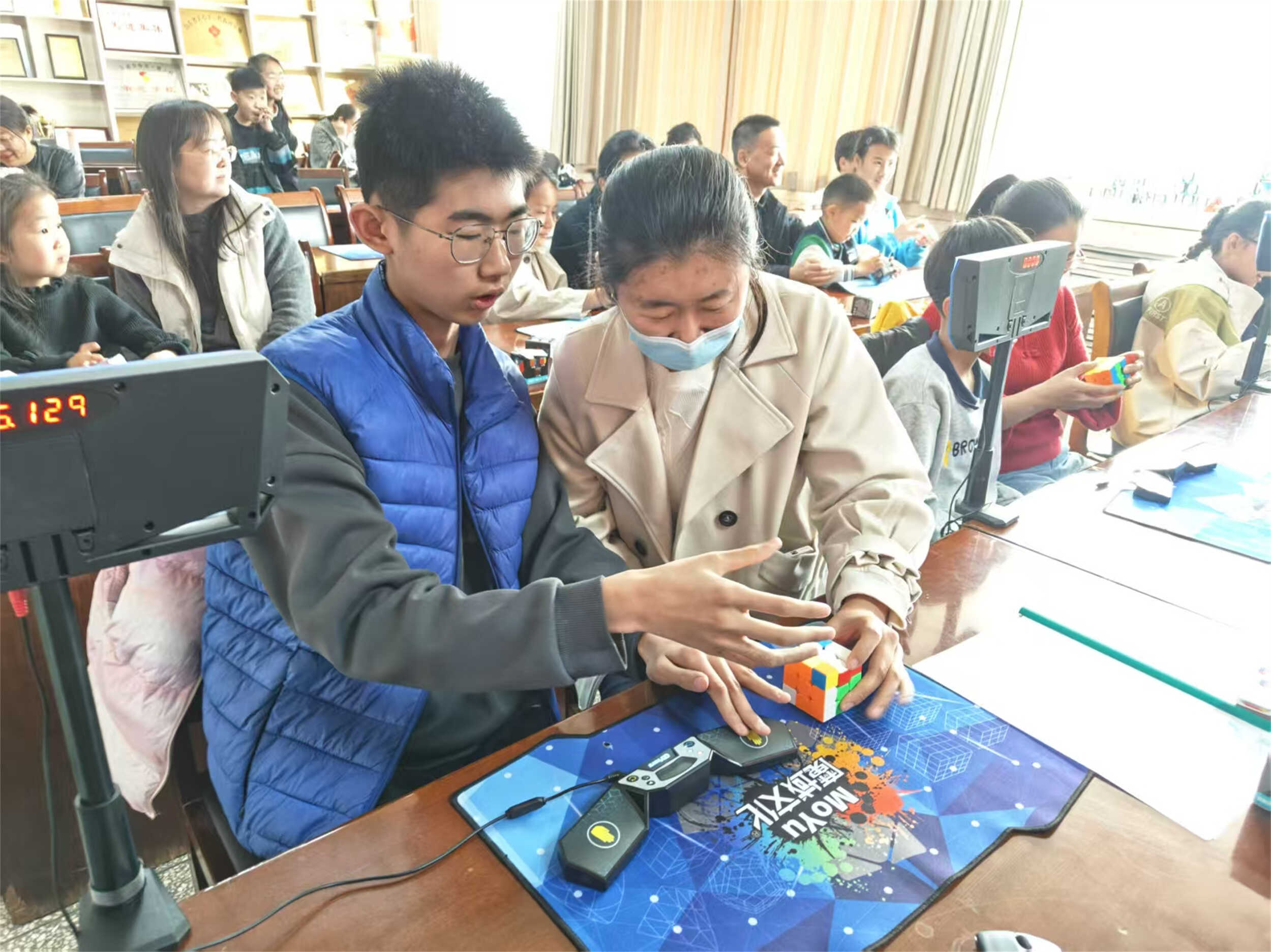 在亲子互动环节,家长与孩子并肩协作,共同探索魔方还原的方法,手把手教学、面对面交流,在互帮互助中攻克难题,在趣味PK中增进感情。原本对魔方一窍不通的孩子,在家长的陪伴与老师的指导下,一步步完成还原,收获了“从不会到会”的满满成就感,现场欢声笑语不断,温馨的亲子氛围与浓厚的学习氛围交织相融。