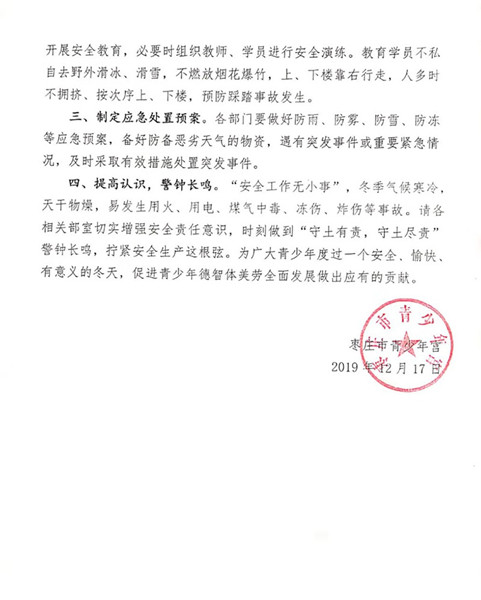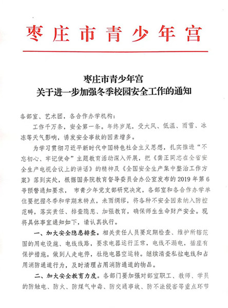 关于进一步加强冬季校园安全工作的通知
