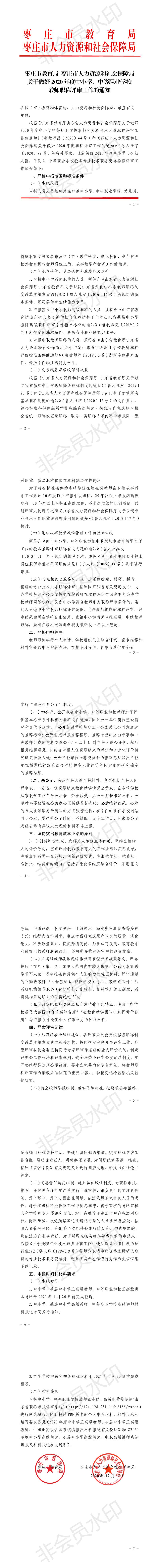 枣庄市教育局 枣庄市人力资源和社会保障局关于做好2020年度中小学、中等职业学校教师职称评审工作的通知